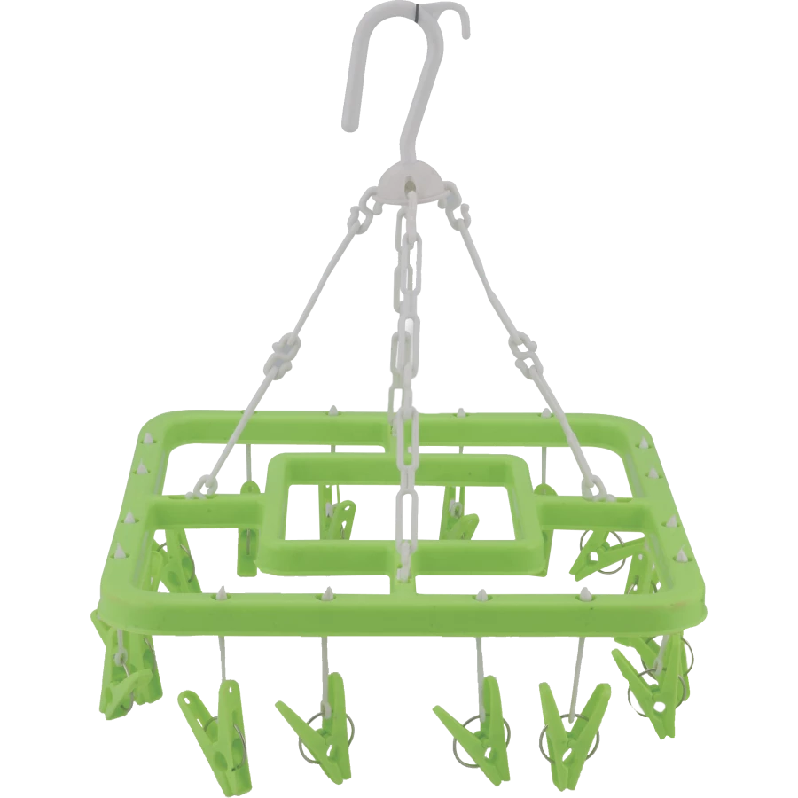 The Plastic Round Clip Hanger is a convenient and durable storage solution designed to efficiently hang a variety of items. Its circular shape and multiple clips provide a secure and space-saving way to organize your belongings. The sturdy plastic construction ensures long-lasting use, while the smooth finish prevents snagging or scratching. Perfect for hanging clothes, towels, bags, or even scarves, this versatile hanger is an essential addition to any closet or laundry room.