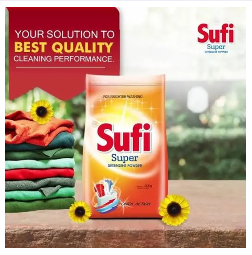Sufi Super Detergent is a powerful and reliable laundry detergent that effectively removes tough stains and dirt. With its advanced formula, Sufi Super Detergent leaves your clothes clean, fresh, and bright.